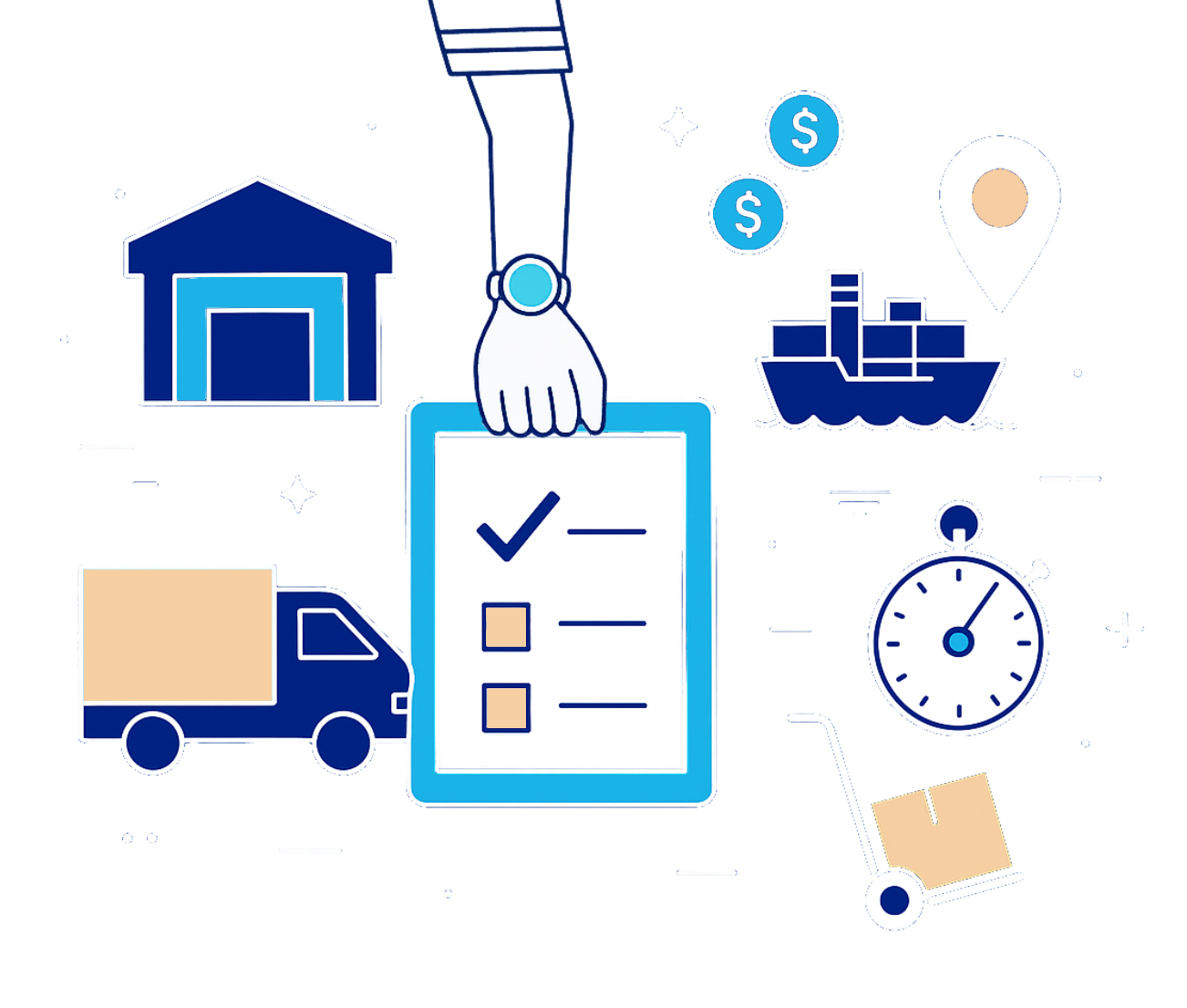 Centralisez vos flux d’entrée et de sortie, vos stocks et vos opérations de chargement dans une seule interface. Suivez vos indicateurs de performance logistique (taux de remplissage, délais, coûts unitaires). - Entreprises de distribution & e-commerce
